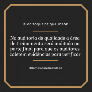 Na auditoria de qualidade a área de treinamento será auditada na parte final para que os auditores coletem evidências para verificar.