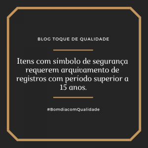 Itens com símbolo de segurança requerem arquivamento de registros com período superior a 15 anos.