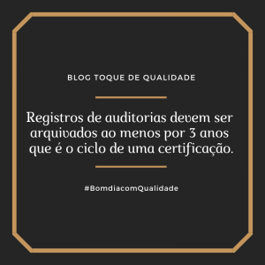 Registros de auditorias devem ser arquivados ao menos por 3 anos que é o ciclo de uma certificação.