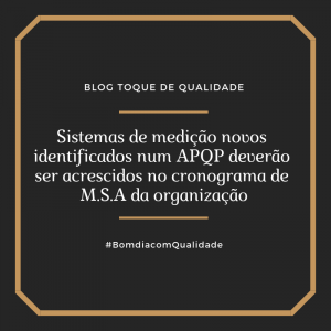 Sistemas de medição novos identificados num APQP deverão ser acrescidos no cronograma de M.S.A da organização