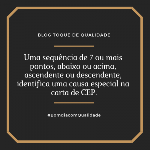 Uma sequência de 7 ou mais pontos, abaixo ou acima, ascendente ou descendente, identifica uma causa especial na carta de CEP.