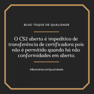 O CS2 aberto é impeditivo de transferência de certificadora pois não é permitido quando há não conformidades em aberto.