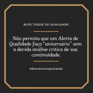 Não permita que um Alerta de Qualidade faça “aniversário” sem a devida análise crítica de sua continuidade.