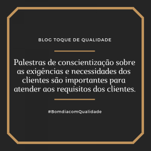 Palestras de conscientização sobre as exigências e necessidades dos clientes são importantes para atender aos requisitos dos clientes.