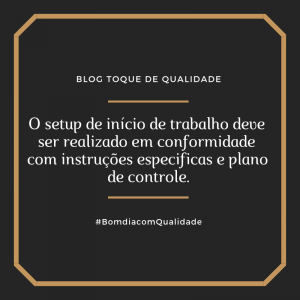 O setup de início de trabalho deve ser realizado em conformidade com instruções especificas e plano de controle.