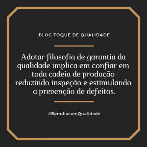 Adotar filosofia de garantia da qualidade implica em confiar em toda cadeia de produção reduzindo inspeção e estimulando a prevenção de defeitos.