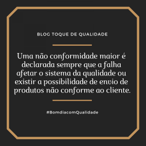 Uma não conformidade maior é declarada sempre que a falha afetar o sistema da qualidade ou existir a possibilidade de envio de produtos não conforme ao cliente.