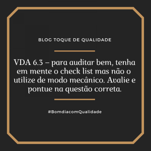 VDA 6.3 – para auditar bem, tenha em mente o check list mas não o utilize de modo mecânico. Avalie e pontue na questão correta.