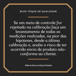 Se um meio de controle for rejeitado na calibração faça um levantamento de todas as medições realizadas, na pior das hipóteses, desde a última calibração e, avalie o risco de ter ocorrido envio de produto não-conforme ao cliente.