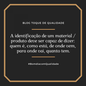 A identificação de um material / produto deve ser capaz de dizer: quem é, como está, de onde vem, para onde vai, quanto tem.