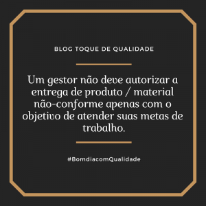 Um gestor não deve autorizar a entrega de produto / material não-conforme apenas com o objetivo de atender suas metas de trabalho.