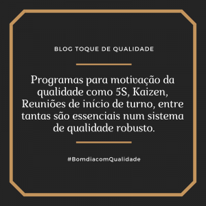 Programas para motivação da qualidade como 5S, Kaizen, Reuniões de início de turno, entre tantas são essenciais num sistema de qualidade robusto.