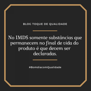 No IMDS somente substâncias que permanecem no final de vida do produto é que devem ser declaradas.