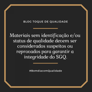 Materiais sem identificação e/ou status de qualidade devem ser considerados suspeitos ou reprovados para garantir a integridade do SGQ.