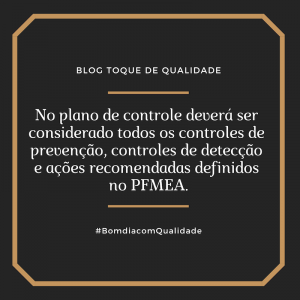 No plano de controle deverá ser considerado todos os controles de prevenção, controles de detecção e ações recomendadas definidos no PFMEA.