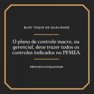 O plano de controle macro, ou gerencial, deve trazer todos os controles indicados no PFMEA.