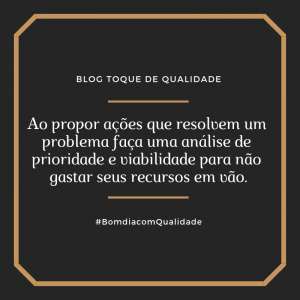 Ao propor ações que resolvem um problema faça uma análise de prioridade e viabilidade para não gastar seus recursos em vão.
