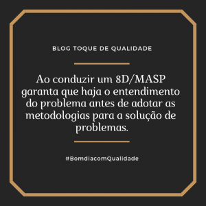 Ao conduzir um 8D/MASP garanta que haja o entendimento do problema antes de adotar as metodologias para a solução de problemas.