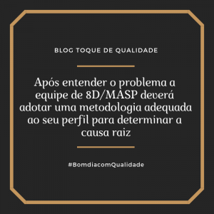 Após entender o problema a equipe de 8D/MASP deverá adotar uma metodologia adequada ao seu perfil para determinar a causa raiz