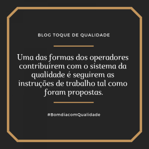 Uma das formas dos operadores contribuírem com o sistema da qualidade é seguirem as instruções de trabalho tal como foram propostas.