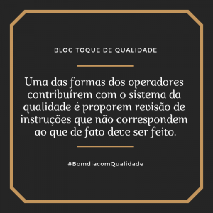 Uma das formas dos operadores contribuírem com o sistema da qualidade é proporem revisão de instruções que não correspondem ao que de fato deve ser feito.