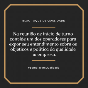 Na reunião de início de turno convide um dos operadores para expor seu entendimento sobre os objetivos e política da qualidade na empresa.